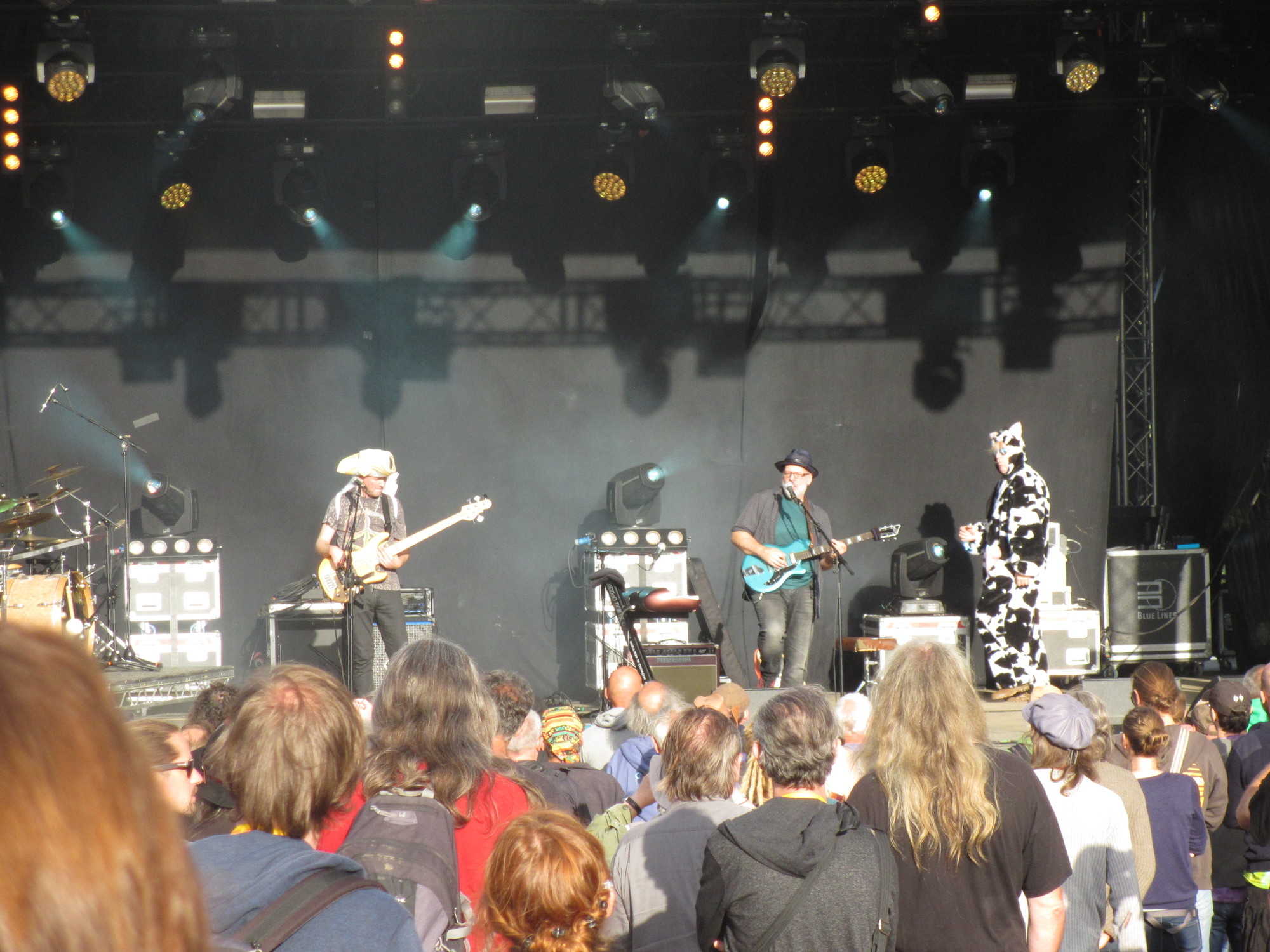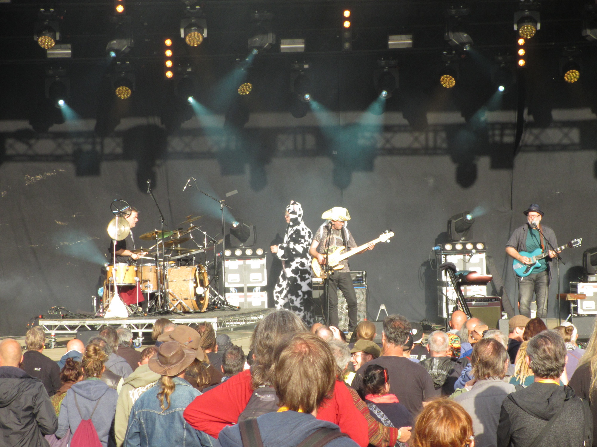 Der Song "Cows" wurde passend in Szene gesetzt, eine coole Sau (5 Herzberg Pfandmarken für die Wortspiel-Kalauer-Kasse) marschierte mehrfach im Plüsch-Kuh-Kostüm über die Bühne.