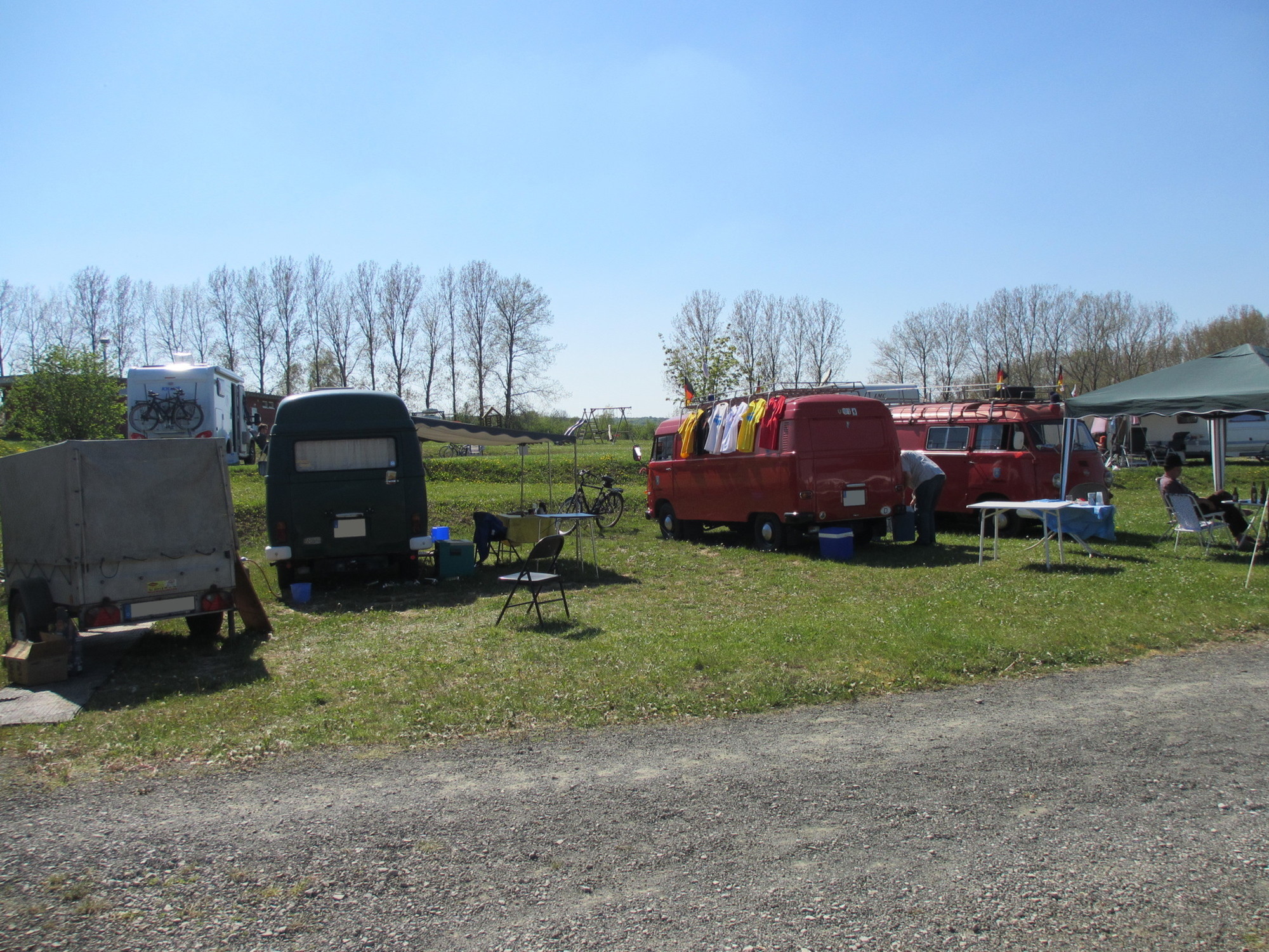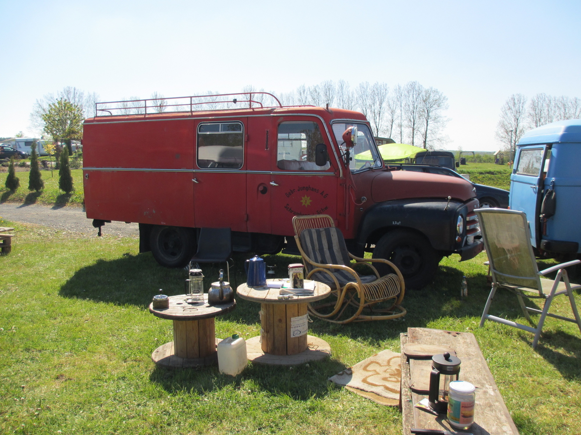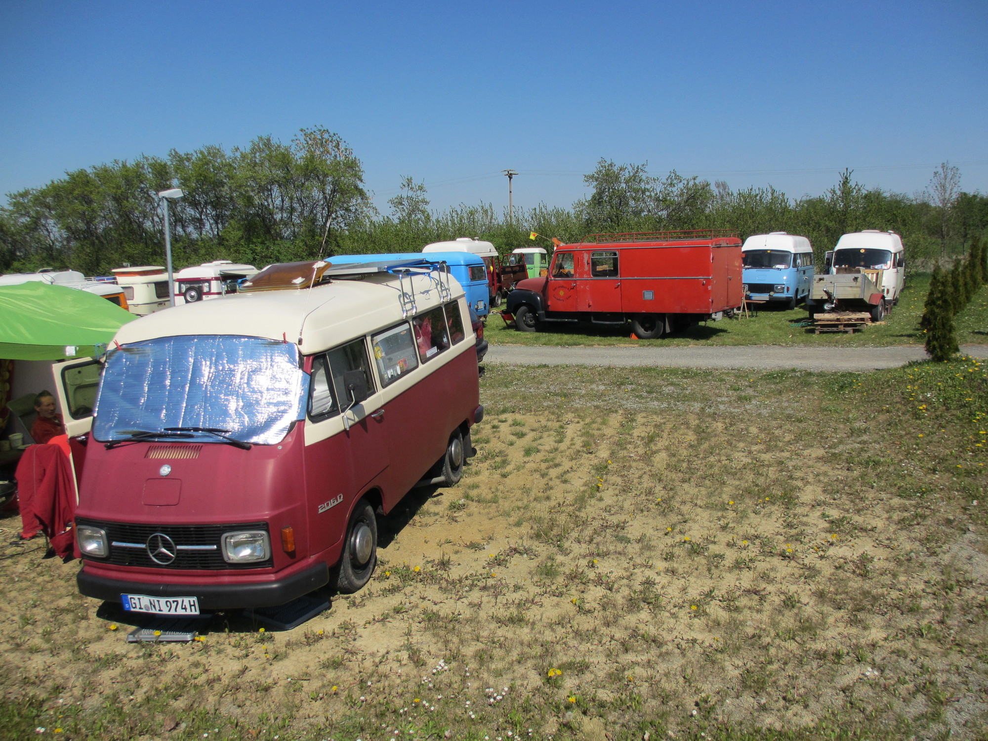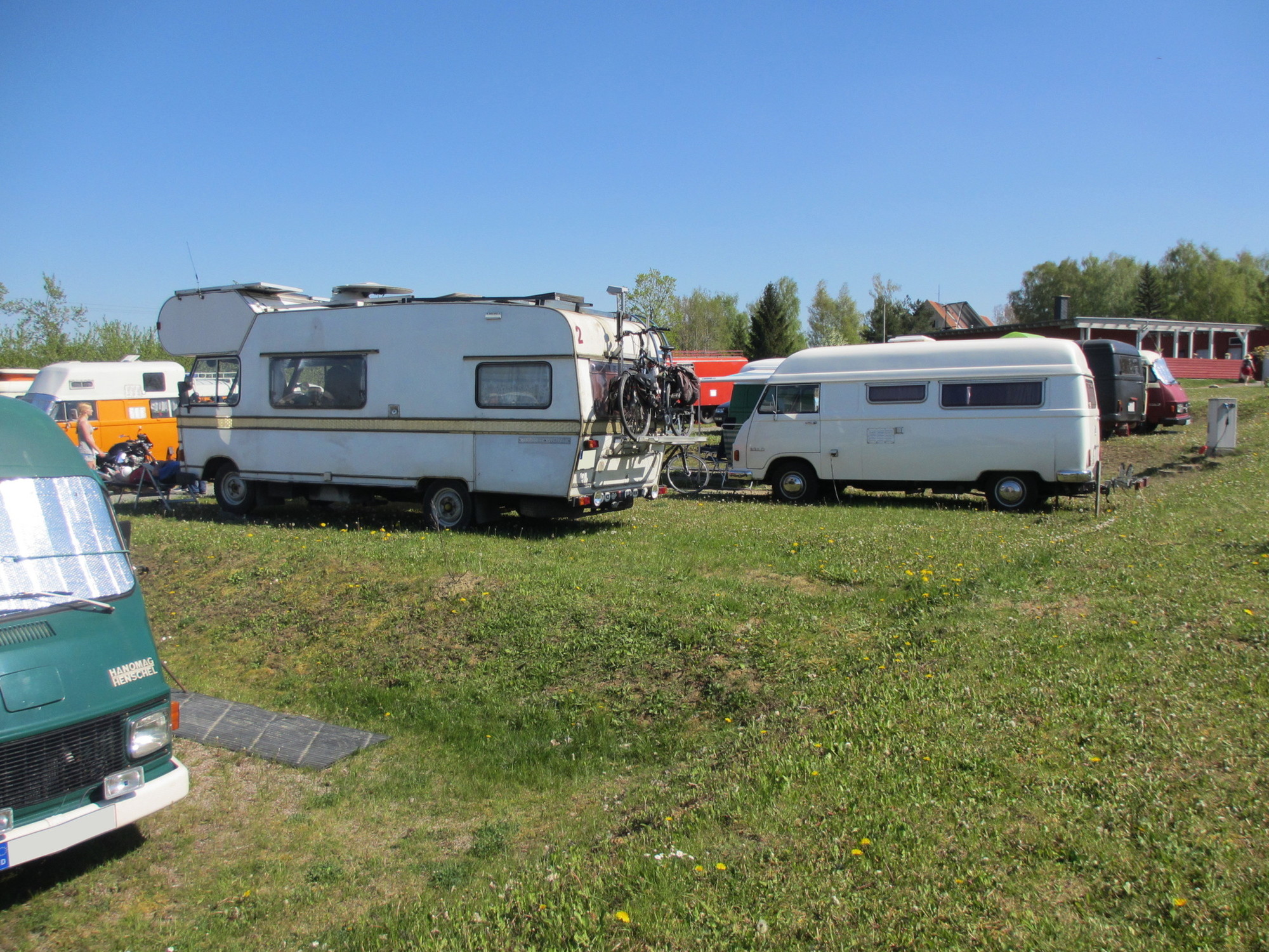 Es waren schon ein ganze Menge interessanter Gefährte und nicht minder interessante Bewohner vorhanden. Letztendlich waren es wohl knapp 30 Hanos am Wochenende auf dem Platz plus Klaus mit seinem Opel Blitz.