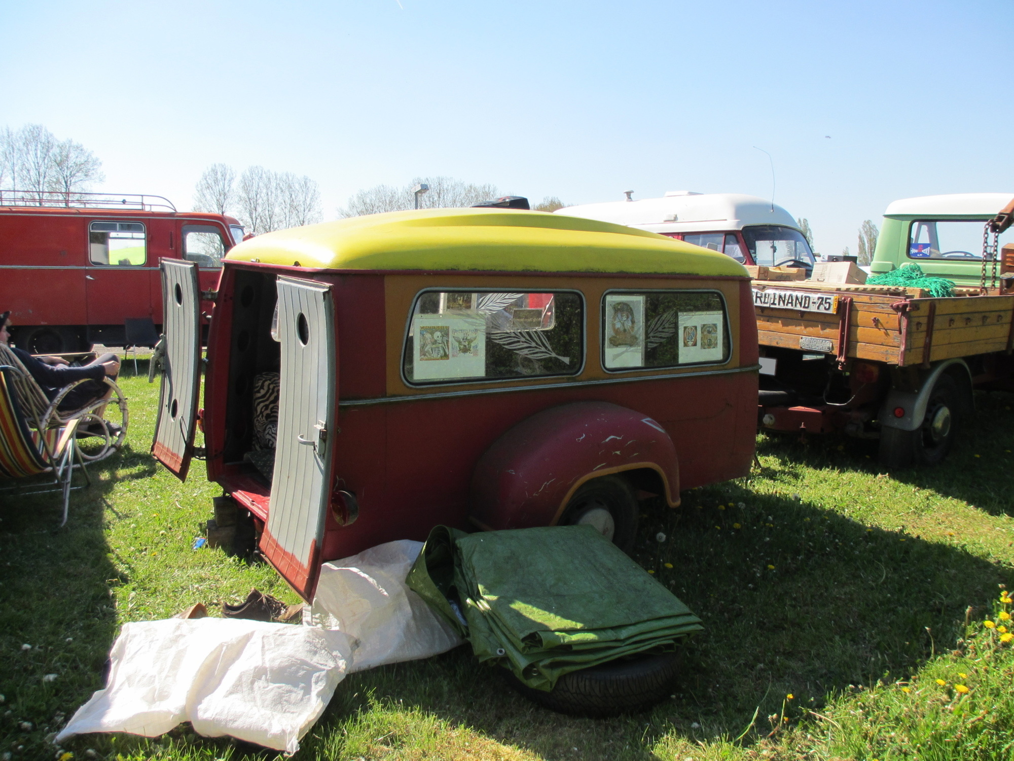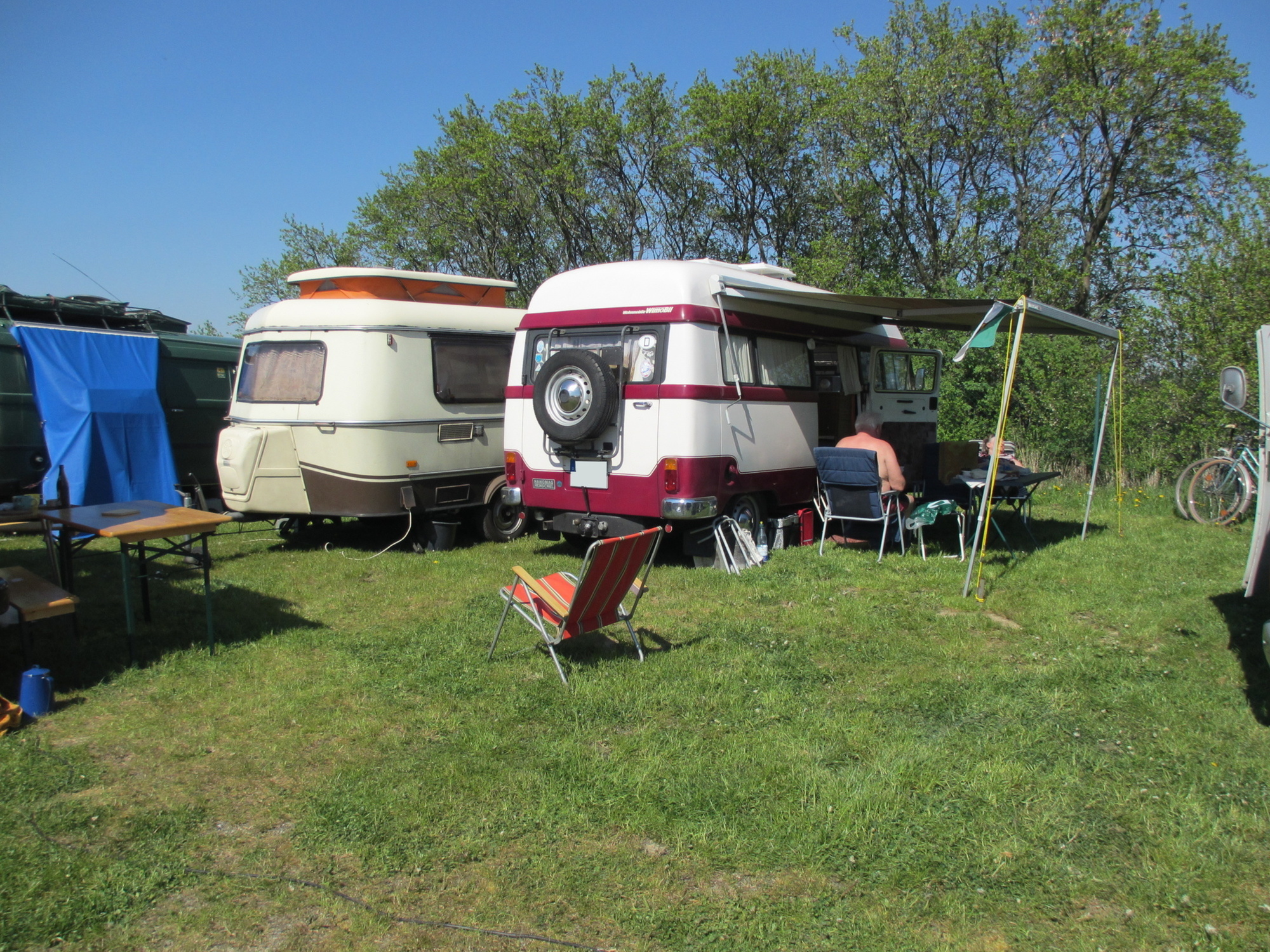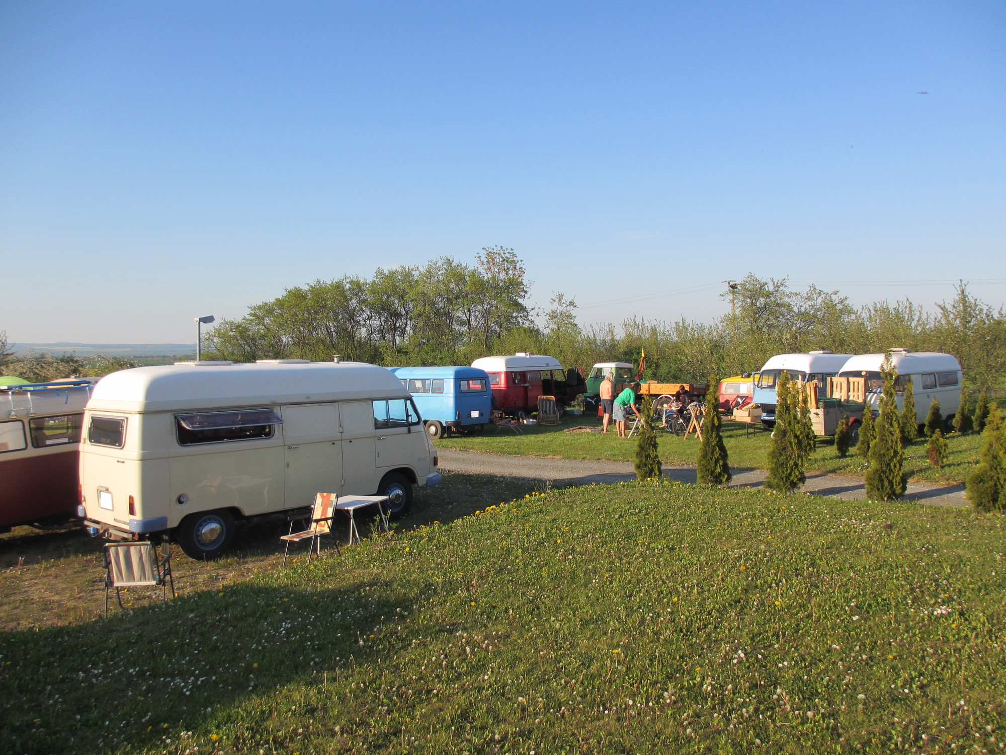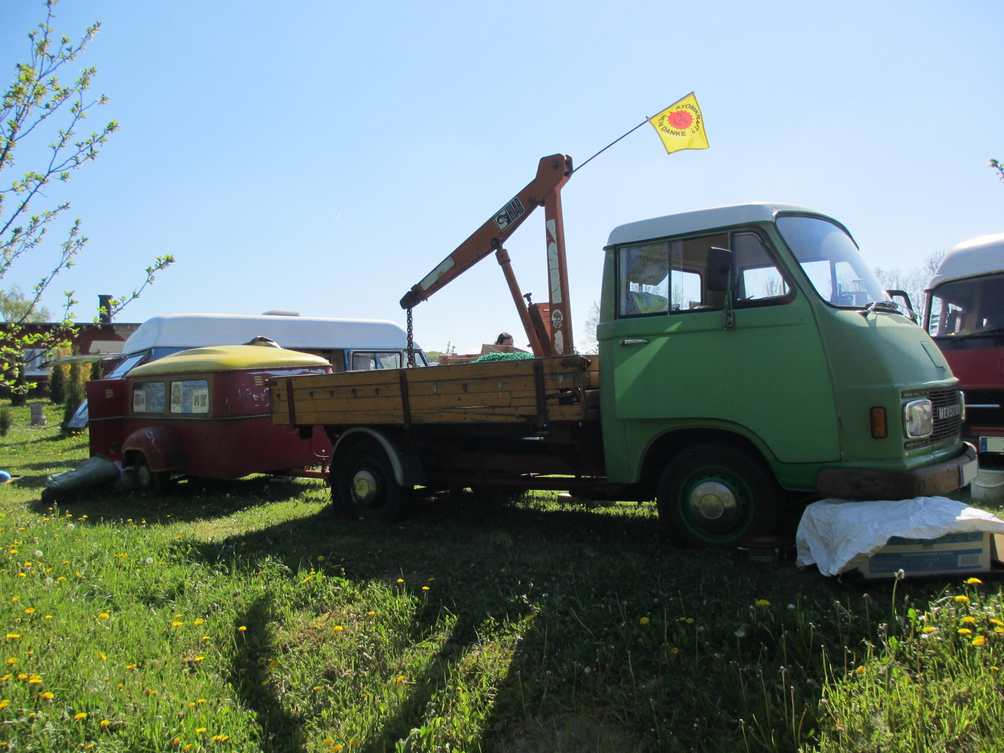 Es waren schon ein ganze Menge interessanter Gefährte und nicht minder interessante Bewohner vorhanden. Letztendlich waren es wohl knapp 30 Hanos am Wochenende auf dem Platz plus Klaus mit seinem Opel Blitz.